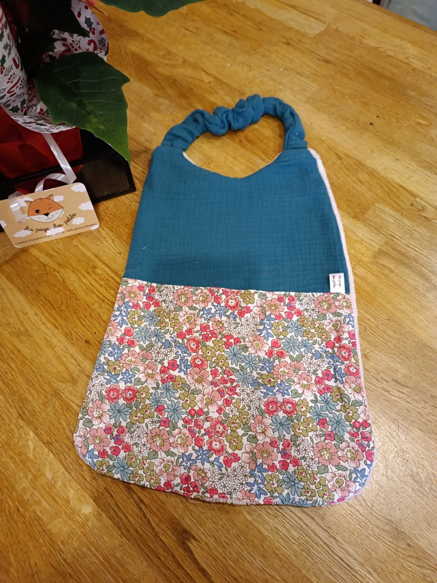 face en tissu coton motif et en double gaze et l'autre face en tissu éponge coton 100% coton , ces 2 tissus sont certifié Oeko-tex standard 100 (sans substance nocive) parfait pour la maison, la cantine, la garderie.