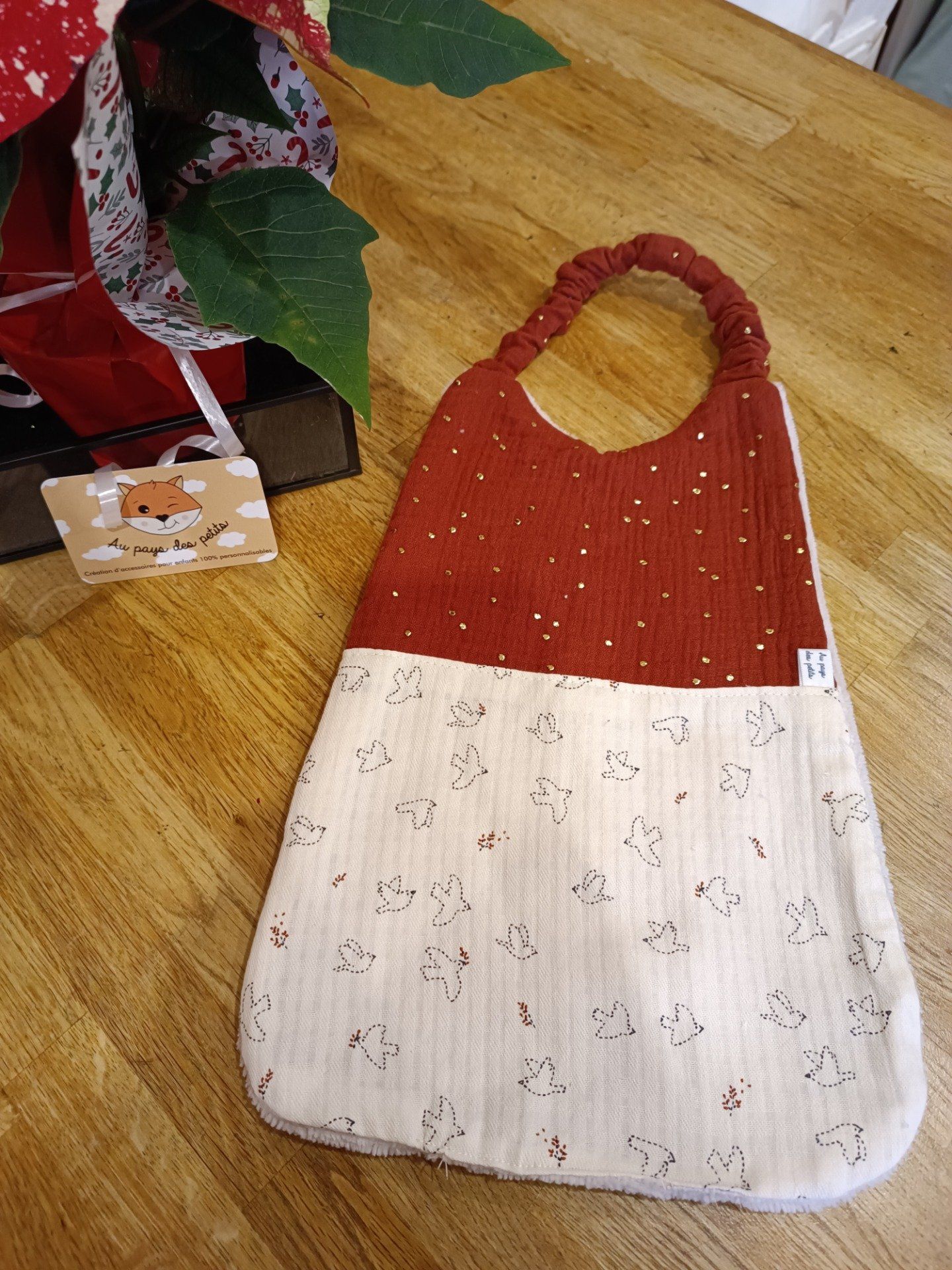 face en tissu coton motif et en double gaze et l'autre face en tissu éponge coton 100% coton , ces 2 tissus sont certifié Oeko-tex standard 100 (sans substance nocive) parfait pour la maison, la cantine, la garderie.