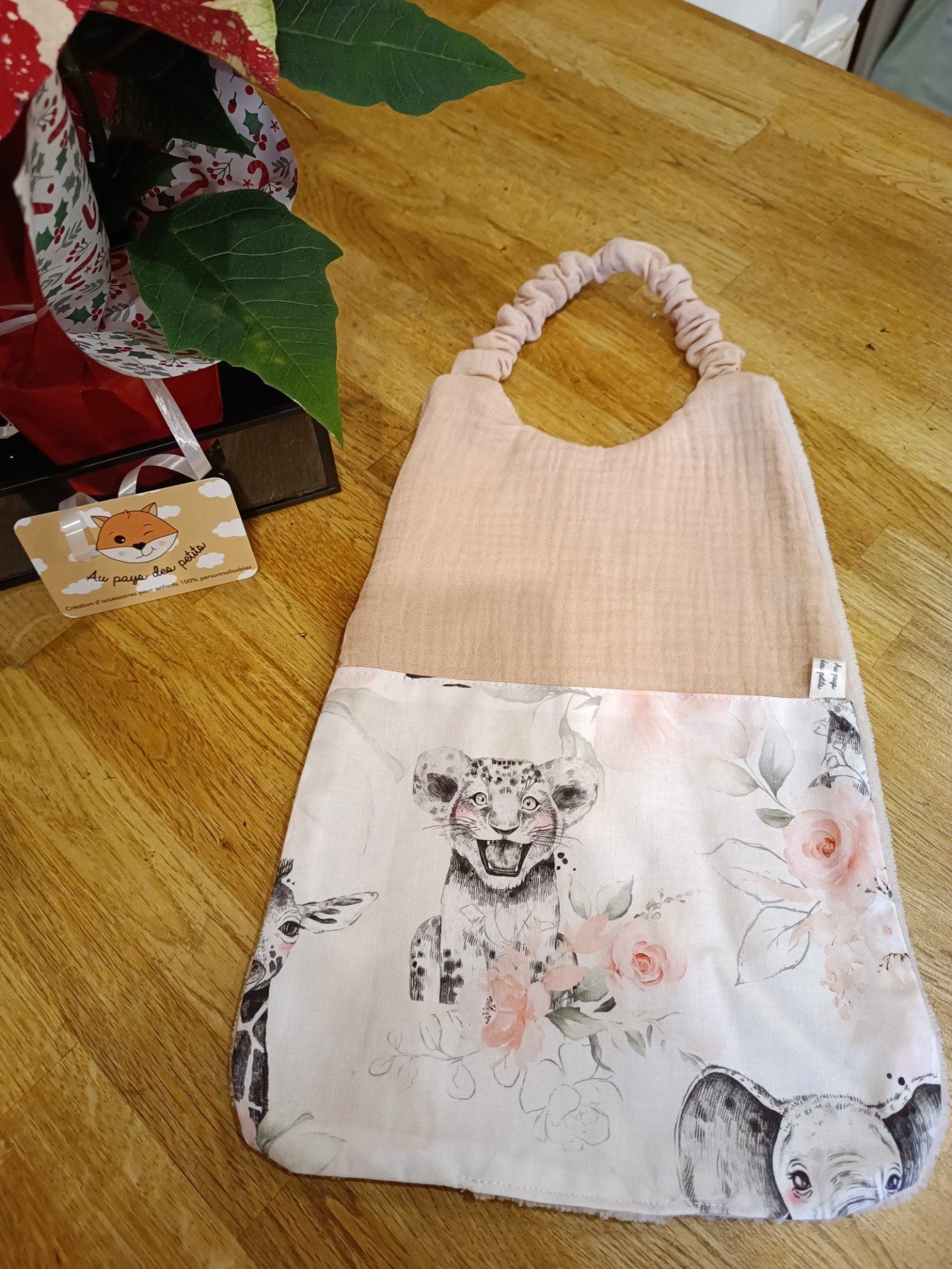 Bavoir cantine maternelle Safari fleuri et DG rose