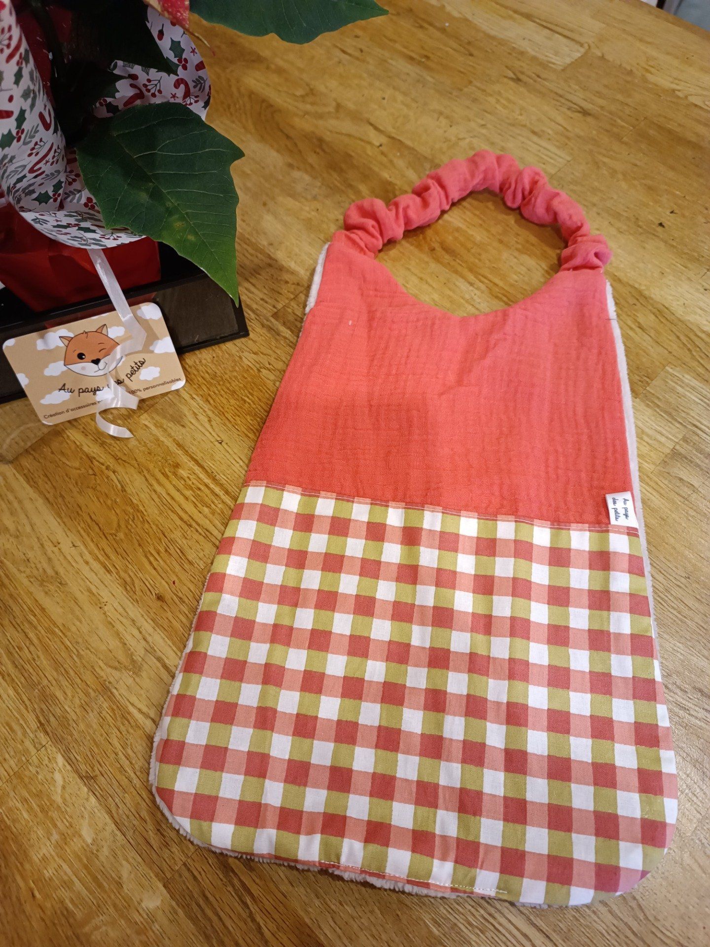 Bavoir cantine maternelle vichy sorbet